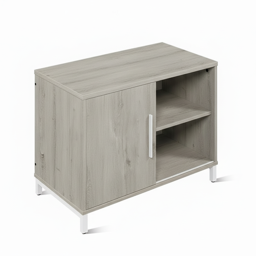 металлическая ручка 160 мм. Тумба устанавливается на металлическую опору высотой 90 мм. Опора тумбы изготовлена из стального профиля 25х25 мм и 20х20 мм с толщиной стенки 1,2 мм. На опорах установлены пластиковые заглушки с регулируемыми подпятниками М8. Все металлические части покрыты полимерно- порошковой краской. Для изготовления тумбы используется ЛДСП высококачественного класса эмиссии Е1 и качественные комплектующие российских и зарубежных производителей. Мебель изготавливается в соответствии с ГОСТ 16371-2014.